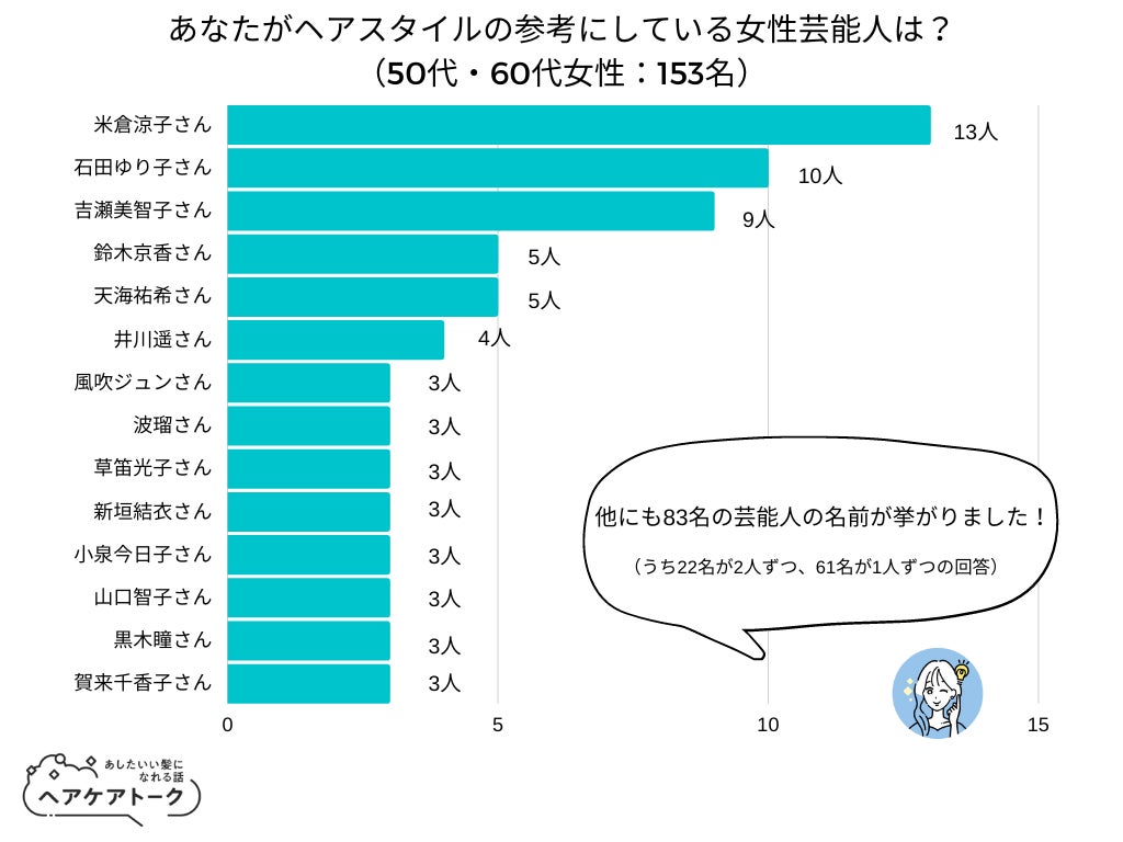 ヘアスタイルの参考にしている女性芸能人について50代・60代の女性153人に調査!一番多かったのは?